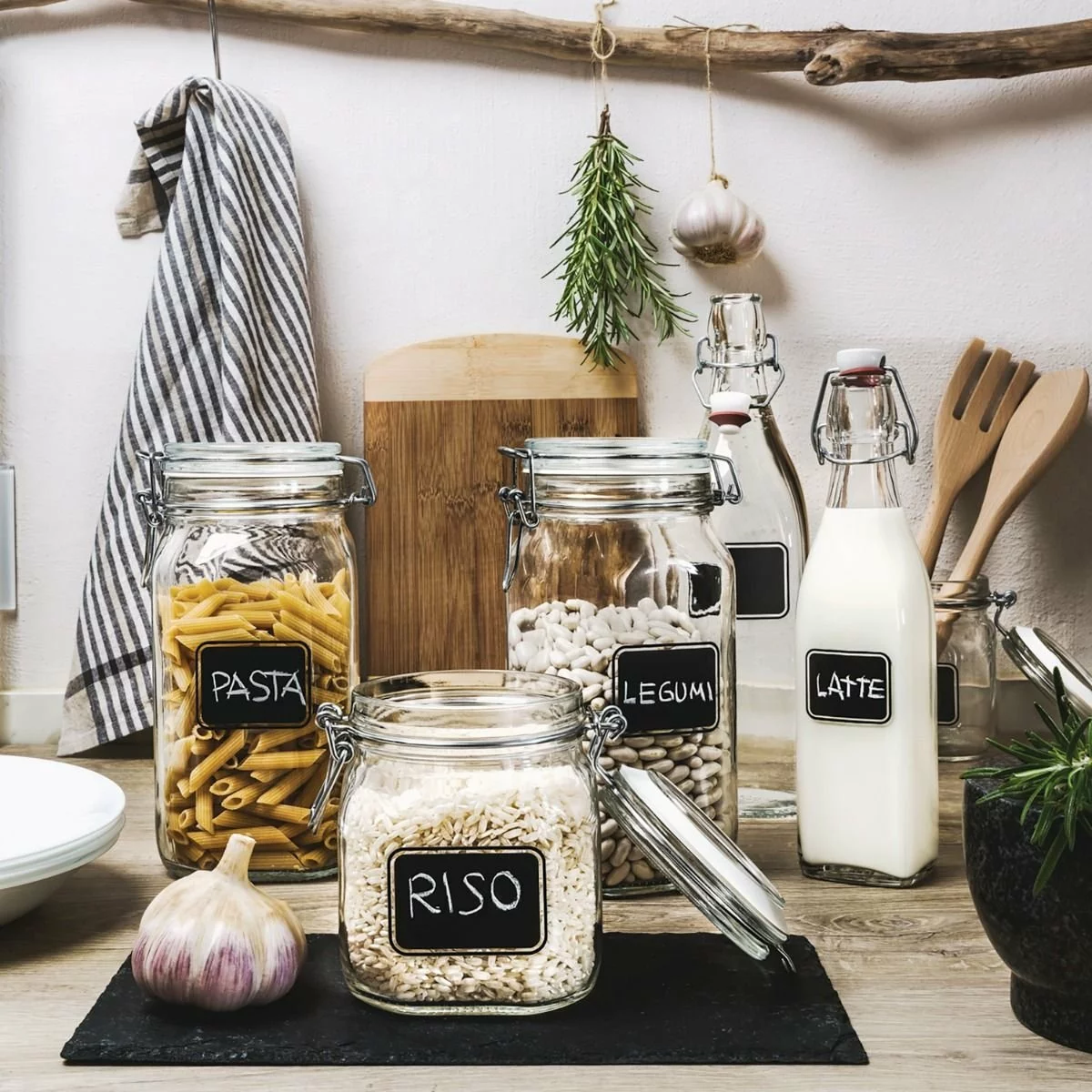 These glass swing bottles can be used for so much more than storing food goods. The glass swing bottle has a hinged lid and can be used to organize craft materials or use them as gift packaging for homemade crafts like bath salts, sugar scrubs, or hot cocoa mix. There are so many fun possibilities!