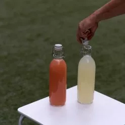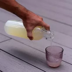 Serve water, soda, infusions, and juices in this classic Emilia Bottle by Bormioli Rocco. It holds 1 liter, making it the perfect beverage bottle for your table or picnic. The loop plug makes an airtight closure that preserves the aroma and scent of drinks, keeps beverages fresh, and protects against spills. The Emilia bottle is perfect for classic bottle lovers! You’ll love bringing it out at brunch or just dressing your table up a bit for a simple dinner.