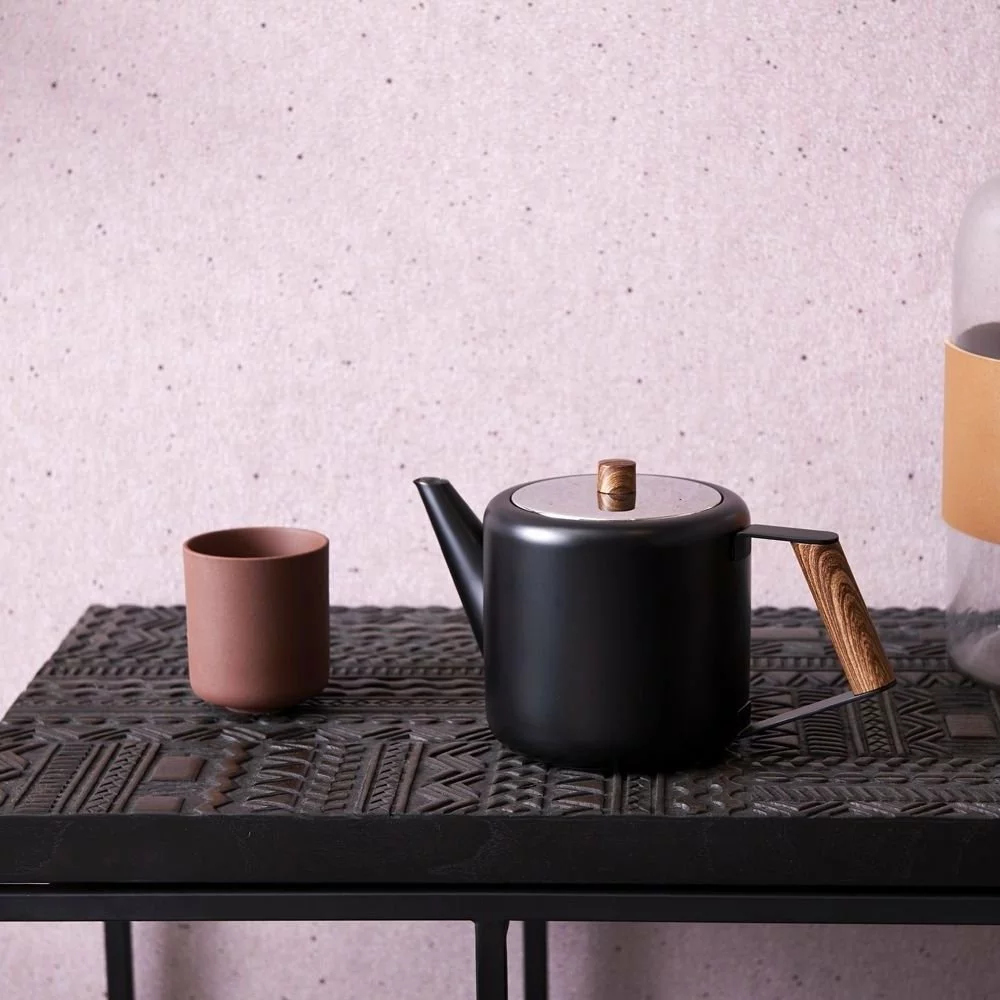 Accentuate the luxury of quality tea time with your family or guests with the Bredemeijer Boston 37oz Double Wall Teapot in Black Matte! Made from black matte stainless steel, this streamlined and contemporary teapot features a double insulating wall to keep the contents inside hotter for up to an hour longer. It bears a lovely wood-accent handle as a wonderful contrast in color that matches with the knob over the cover, making it a piece that not only looks great in the contemporary kitchen, but it will match cottage and rustic aesthetics. Its tapered spout is designed to pour smoothly while eliminating the possibility of spills and messes. Perfect for any tea enthusiast, the Bredemeijer Boston 37oz Double Wall Teapot in Black Matte will bring class and style to any kitchen!