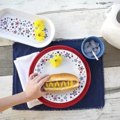 Add beauty to an otherwise ghostly holiday with Fiesta® 12″ Bread Tray from the Americana Stars Collection! Your favorite red, white, and blue treats will be even more delicious sliced and piled high on this pretty bread tray. This bread tray features the patriotic Americana Stars design with vibrant red and blue stars dotting a white background.