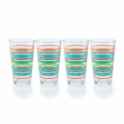 Celebrate the rain this springtime with the Fiesta® Rainbow Radiance Drinkware Set! From cocktails and old-fashioneds to iced tea and fruit smoothies, quench your thirst with each set of glasses whether indoors or enjoying from underneath the awning of your deck as the showers bring on the flowers. Featuring stripes in Poppy, Daffodil, Turquoise, Scarlet, & Meadow on each glass, you are bound to freshen up the table and astound your company. Blow your next gathering out of the water with this Rainbow Radiance Drinkware Set and pair your glasses with vibrant and colorful dinnerware. Leave it to Fiesta® to make your favorite drinkware!