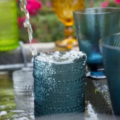 Add an eye-catching texture to your table setting with the D&V Jupiter Glass in alluring Cornflower. Inspired by vintage glassware found in Parisian flea markets, the D&V Jupiter Collection features an intricate beaded detailing around the glass for a unique presentation of any beverage. This vintage-style piece is made of durable, high-quality glass and has a sturdy, weighted base for a stylish piece of drinkware perfect for evening summer dinner parties and everyday dining. For a subtle touch of color that’ll give your table a vintage, French-style charm, try the D&V Jupiter Collection by Fortessa today!