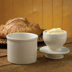 Keep your butter fresh and never rip another piece of toast with the Mrs. Anderson’s Butter Keeper from the Harold Imports Company. This ceramic, earthenware butter keeper holds up to 4oz of butter and is microwavable, so you can soften firmer butter in a pinch. This butter keeper uses a small amount of water in the base to create an airtight seal that allows butter to remain fresh for up to 30 days. Just change out the water every 3 days and you’ll get perfectly soft butter. The simple design of the white ceramic butter bell makes it easy to add into your kitchen decor. Get your butter keeper today and enjoy fresh butter that won’t be a pain to spread!