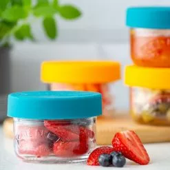 Easily store and transport your favorite snacks with the Kilner Snack and Store 4oz jars. This set of two jars come with vibrant silicone lids that create a leak-proof seal. The jars are designed to be stackable so they take up the least amount of space in your pantry, fridge, or wherever else you want to take them. Prep your overnight oats, store your toppings or take your favorite snacks on the go, all with the Kilner Set of 2 Snack and Store 4oz jars!