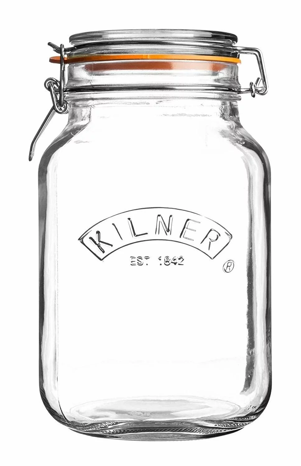Kilner Clip Top 68-Ounce Square Glass Jar Features: