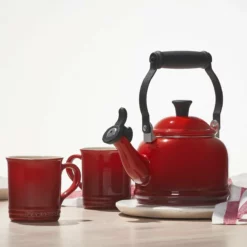 Le Creuset 1.25 Qt. Demi Kettle Tea Pot + 2 – 14oz Mugs Set Features: