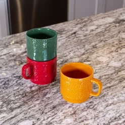 - The footed bases allow the mugs to be stacked with mixed or matched colors of like-designed In The Forest mugs