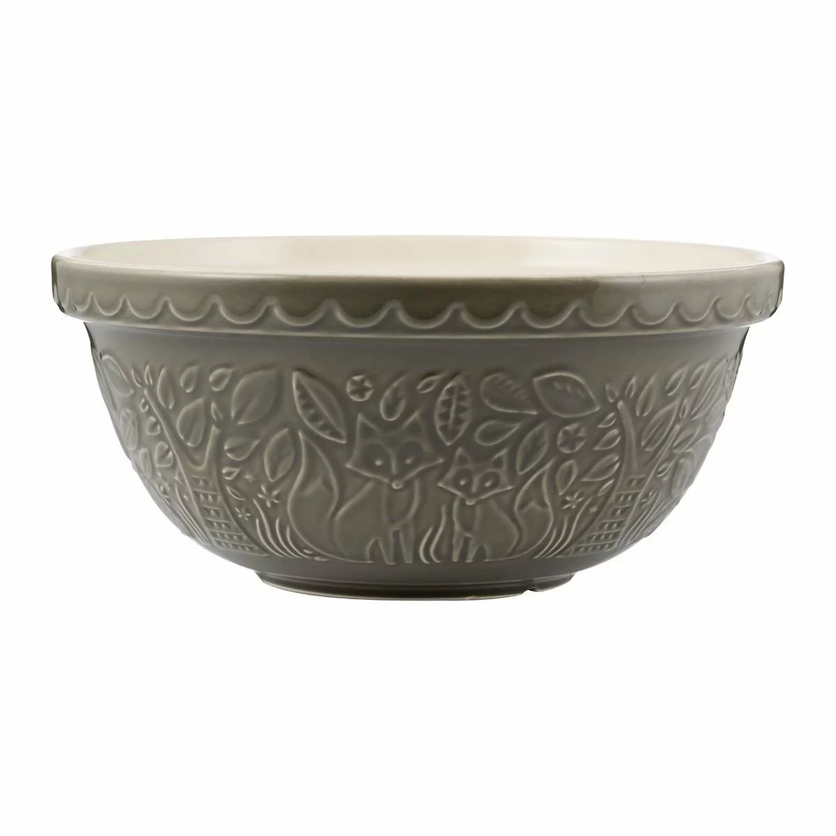 Mason Cash has long been known for creating beautiful mixing bowls and the Grey Fox Embossed bowl is no exception. Made from durable stoneware, this mixing bowl features an intricate embossed design inspired by 19th Century European folk tales. This, paired with the grey color, sets this bowl apart from all others while still complementing the existing pieces of the In The Forest collection. This 4.25-quart bowl is great for whipping up anything from cookies to side dishes with ease. Add a touch of color to your mixing bowl collection with the Mason Cash In the Forest S12 Grey Fox Mixing Bowl today!