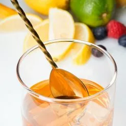Show off your masterful mixology skills by reaching for professional-quality bar tools from Barfly Mixology Gear by Mercer the next time it’s your turn to entertain. With the Barfly Gold-Plated Stainless Steel Bar Spoon with Fork M37015GD, you’ll show a deft hand at properly mixing pitchers of sangrias, mojitos, mint juleps, or spiked lemonades and punches for your cocktail-loving friends. Barfly’s fetching gold-plated bar spoon is formed from a single piece of durable stainless steel that won’t absorb stains or odors that could cloud the taste of fine spirits. This dual-use bar tool has a spoon on one end and a fork on the other. The spoon is precision-molded for accurate measuring, precise pouring, and gentle stirring; the fork end is designed with long tines, two of which are barbed, to securely spear fragile garnishes like fresh and candied fruit, olives, and onions. The elegant spiraled handle is designed with a twist to gently mix ingredients without bruising, and at a stately 12.4” long, it’s perfect for tall drink glasses and pitchers. With such alluring looks and expert performance, Barfly Mixology Gear by Mercer can turn your kitchen into the neighborhood’s trendiest cocktail lounge.
