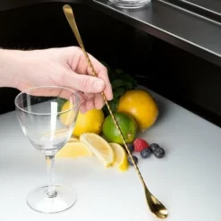 Whether its classics like Old Fashioneds, whiskey sours or martinis or something a bit more trendy – think pumpkin spice Moscow Mules – mixing drinks for your cocktail-loving friends starts with reaching for professional-quality bar tools from Barfly Mixology Gear by Mercer. Show your deft hand at smoothly mixing cocktails made to order or by the pitcher with the Mercer Barfly 13.2” Gold-Plated Japanese-Style Bar Spoon M37010GD. Barfly’s handsome bar spoon is made of a single piece of gold-plated stainless steel that won’t absorb stains or odors that could cloud the taste of fine spirits. This dual-use bar utensil has a precision-molded spoon on one end for accurate measuring, precise pouring, and gentle stirring; the other end is a slightly concave “Japanese Style” machined edge to expertly transport and mix small quantities of garnishes and ingredients. The elegant spiraled handle is designed with a twist to gently blend without bruising, and at a stately 13.2” long, it’s perfect for tall drink glasses and pitchers. With such alluring looks and expert performance, Barfly Mixology Gear by Mercer can turn your kitchen into the neighborhood’s trendiest cocktail lounge.