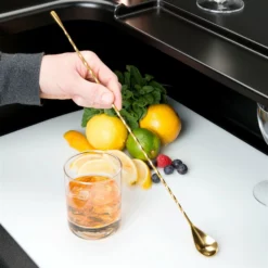 Martinis. Manhattans. Old Fashioneds. Whiskey Sours. Mixing the classics for your cocktail-loving friends starts with reaching for classic bar tools from Barfly Mixology Gear by Mercer. Show your hand at smoothly mixing cocktails made to order or by the pitcher with the Mercer Barfly 15.75” Gold-Plated Classic Teardrop Bar Spoon M37013GD. Barfly’s beguiling bar spoon with the vintage design is made of a single piece of gold-plated stainless steel that won’t absorb stains or odors that could cloud the taste of fine spirits. This dual-use bar spoon has a precision-molded spoon on one end for accurate measuring, precise pouring, and gentle stirring; the other end is weighted with a classic “teardrop,” a perennial favorite of professional bartenders for providing balance and easy mixing. The elegant spiraled handle is designed with a twist to gently blend ingredients without bruising, and at a stately 15.75” long, it’s perfect for tall drink glasses and pitchers. With such alluring looks and expert performance, Barfly Mixology Gear by Mercer can turn your kitchen into the neighborhood’s trendiest cocktail lounge.