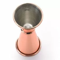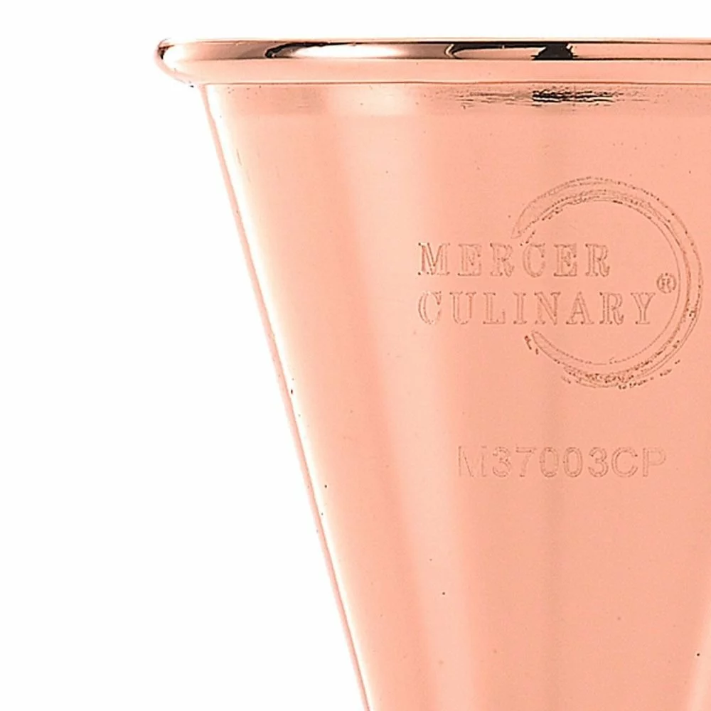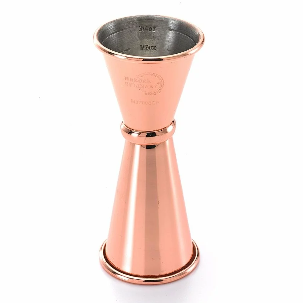 Make the perfect cocktail with this Barfly Copper Plated Jigger! This stainless steel double jigger measures 1.5oz on one side and 3/4oz on the other—perfect for creating a sidecar cocktail consisting of 2oz Cognac, 3/4oz Cointreau, and 3/4oz fresh-squeezed lemon juice. Inside there are internal measurement lines for even more options. Made of 18/8 stainless steel and featuring a rolled top edge for strength, this Japanese style jigger will serve your guests a fantastic cocktail every time. And thanks to its industrial-style feel and shiny copper finish, you’ll love displaying it!