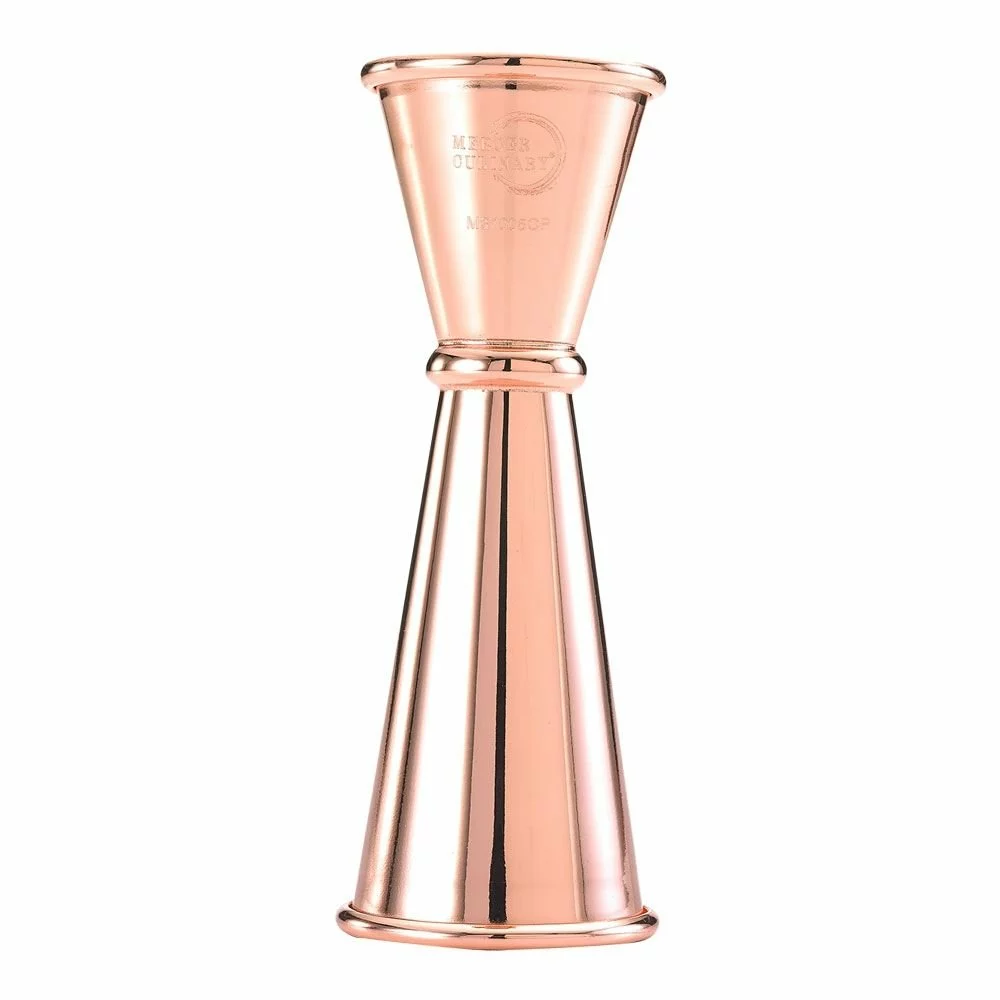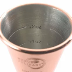 Make the perfect cocktail with this Barfly Copper Plated Jigger! This stainless steel double jigger measures 2oz on one side and 1oz on the other—perfect for creating a classic margarita consisting of 2oz silver tequila, 1oz Cointreau, and 1oz fresh-squeezed lime juice. Inside there are internal measurement lines for even more options. Made of 18/8 stainless steel and featuring a rolled top edge for strength, this Japanese style jigger will serve your guests a fantastic cocktail every time. And thanks to its industrial-style feel and shiny copper finish, you’ll love displaying it!