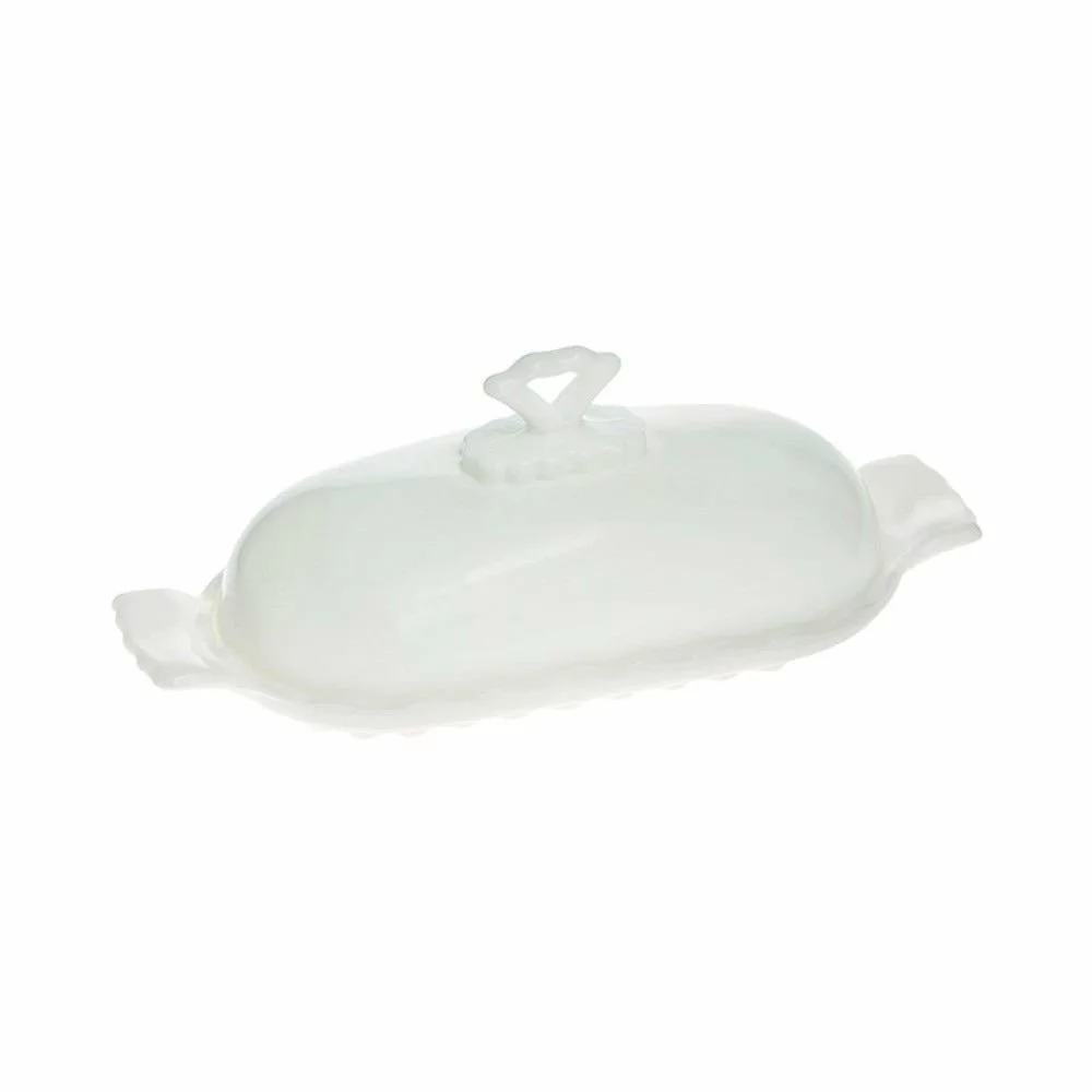 Nothing is more important than having your butter ready for toast, bagels, pancakes, or waffles in the morning. For a butter dish that will impress family and friends at breakfast, consider the Mosser Glass Anna Stick Butter Dish in Milk. Made from Mosser’s hand-pressed glass, it features an elegant and vintage look that is reminiscent of the decor you’d find in your grandparents’ home, full of gorgeous and unique antiques. It holds up to 8 tablespoons of butter, or the average stick of butter, and its stylish lid has a diamond-shaped handle for lifting. Due to its glass construction, you won’t have to worry about scratching from knives and other serving utensils. Over time, you will need to clean your butter dish occasionally, so please hand wash it and dry it immediately every once in a while. Surely to become a treasured piece of serveware in the homestead, the Mosser Glass Anna Stick Butter Dish will be one to carry over into future generations.