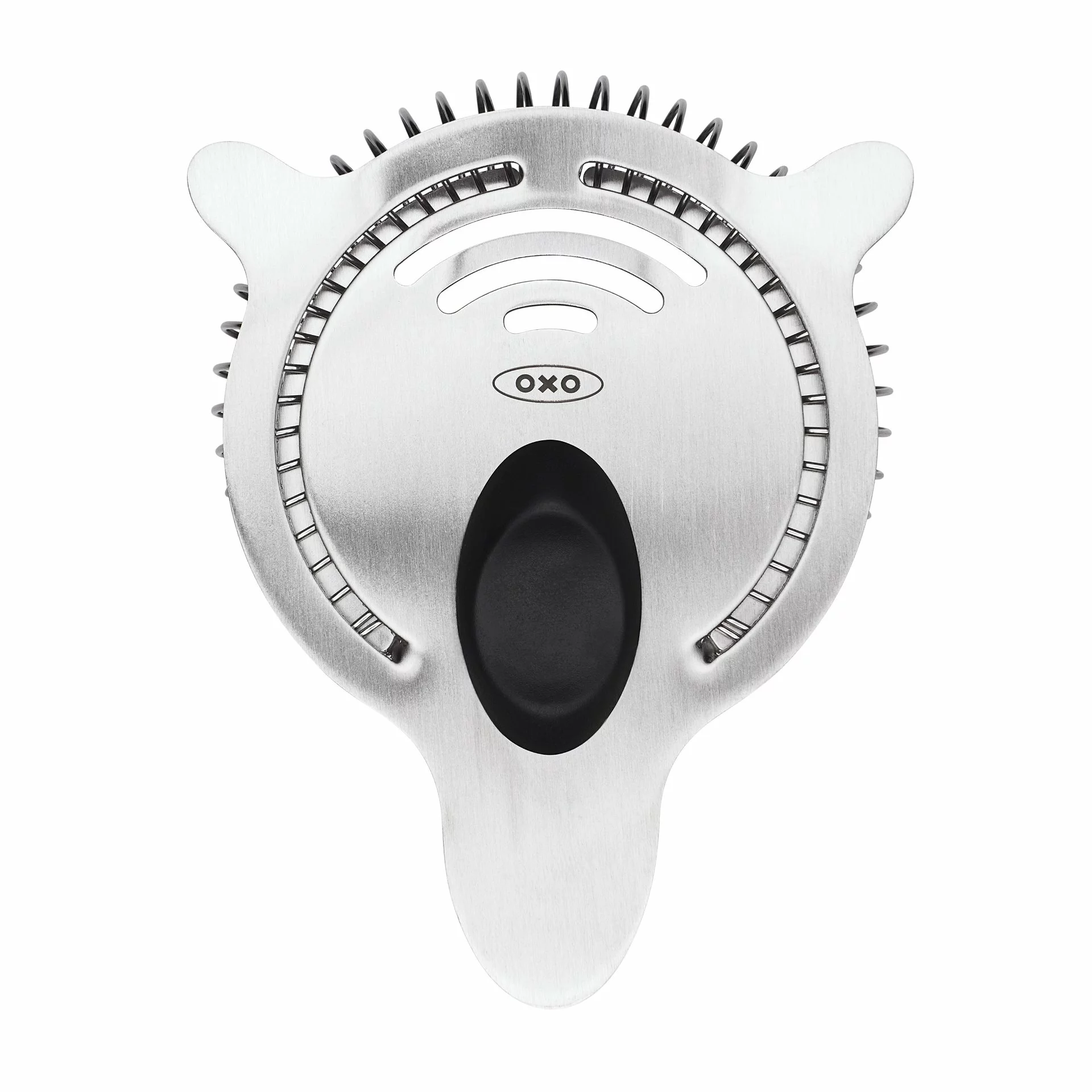 Serve classy cocktails with ease with the OXO SteeL Cocktail Strainer! Crafted from sleek and durable stainless steel, this ergonomic cocktail strainer is constructed with a raised lip that guides liquids through the springs directly into your glass, preventing drips and spills. Plus, it has a soft, non-slip finger-grip, allowing you to comfortably strain and serve with one-hand and is dishwasher-safe for easy cleaning. For your next dinner party or at-home happy hour, try the OXO SteeL Cocktail Strainer!