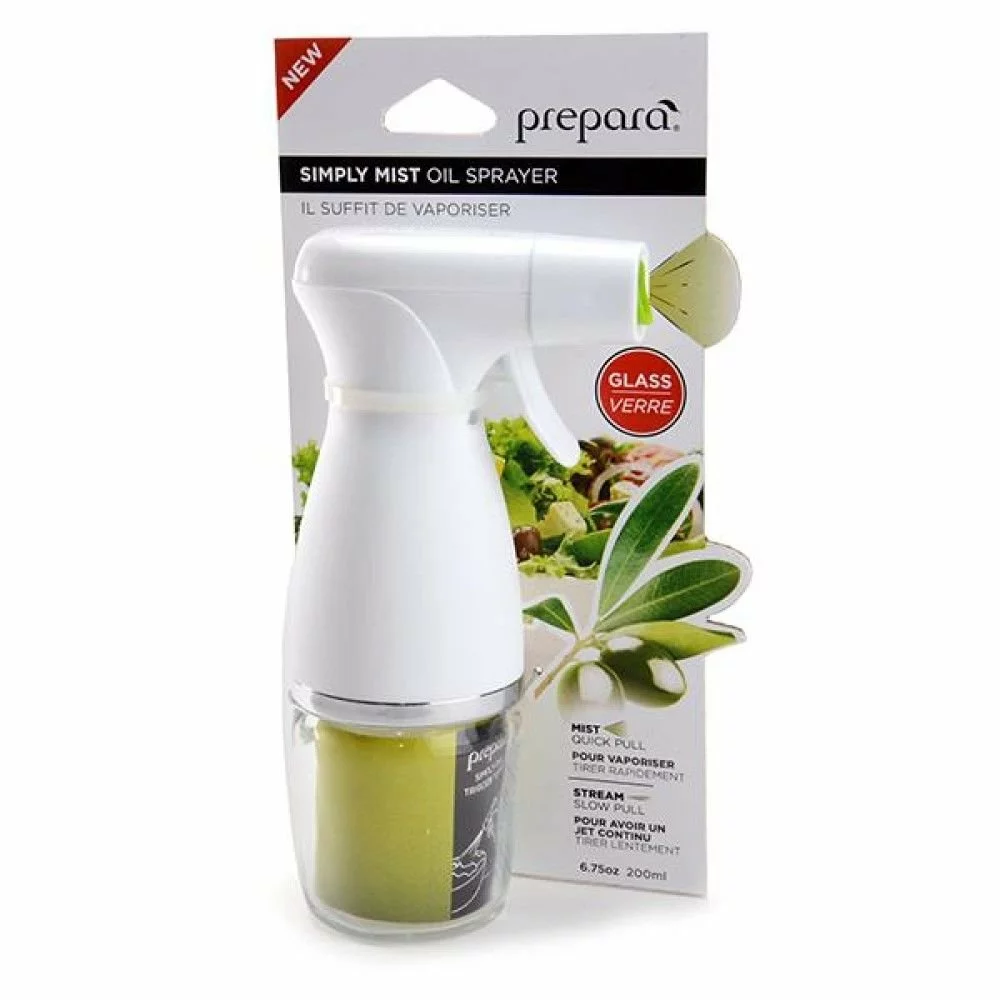The Prepara Metropolitan Simply Mist Olive Oil Sprayer is a cute and fashionable dispenser for gourmet cooking oils. Just a simple squeeze of the trigger sprays the same amount of oil every time without the dangers of aerosols or unneeded pumping for it to work. The Simply Mist Olive Oil Sprayer is perfect for sautéing mushrooms and vegetables, coating your grill racks, and spritzing crisp, fresh salads while being the perfect addition to your cute and cozy kitchen!