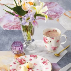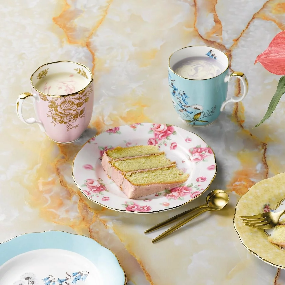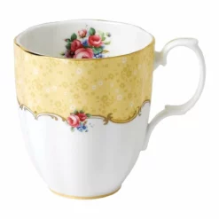 The Royal Albert 100 Years Collection celebrates Royal Albert’s 100th anniversary with a set of mugs in unique & timeless designs from the 1950s through the 1990s. Crafted of fine bone china with a lustrous gold banding along the rim, each mug features an elegant decade design that represents a different decade including a 1950 Festival mug, 1960 Golden Rose mug, 1970 Poppy mug, 1980 Rose Blush mug, & 1990 Bouquet mug. Packaged in a beautiful Royal Albert presentation box, this elegant set of mugs makes a wonderful gift and will become a cherished collection that tells a neat story you can share with friends & family over tea or coffee. Add a little piece of history to your serveware collection with the Royal Albert 100 Years 1950-1990 Mug Set today!