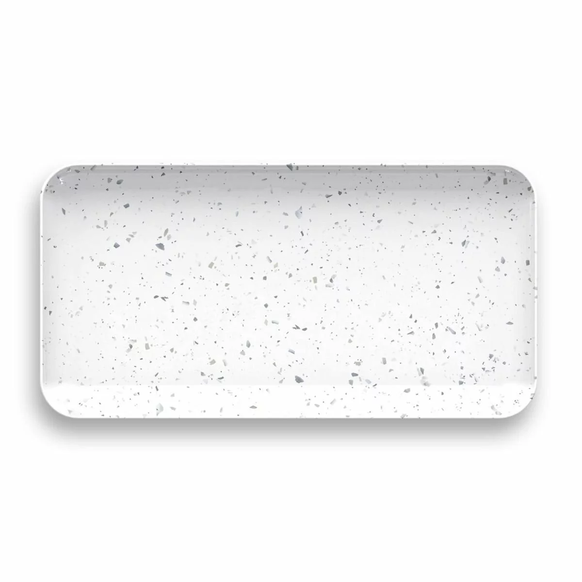 From TarHong, this serving tray is made of durable, shatter proof, and BPA-free melamine with a glossy finish. The melamine material is also eco-friendly. The pattern, terrazzo matte, elevates this piece and makes it perfect for guests of any kind, even at the fanciest gatherings! The finish features flecks of authentic terrazzo! Wow your business clients and impress your family friends. Big enough and sturdy enough for tea service, lunch, dinner, and any other meal you can imagine, this tray is at home in any kitchen or dining room!