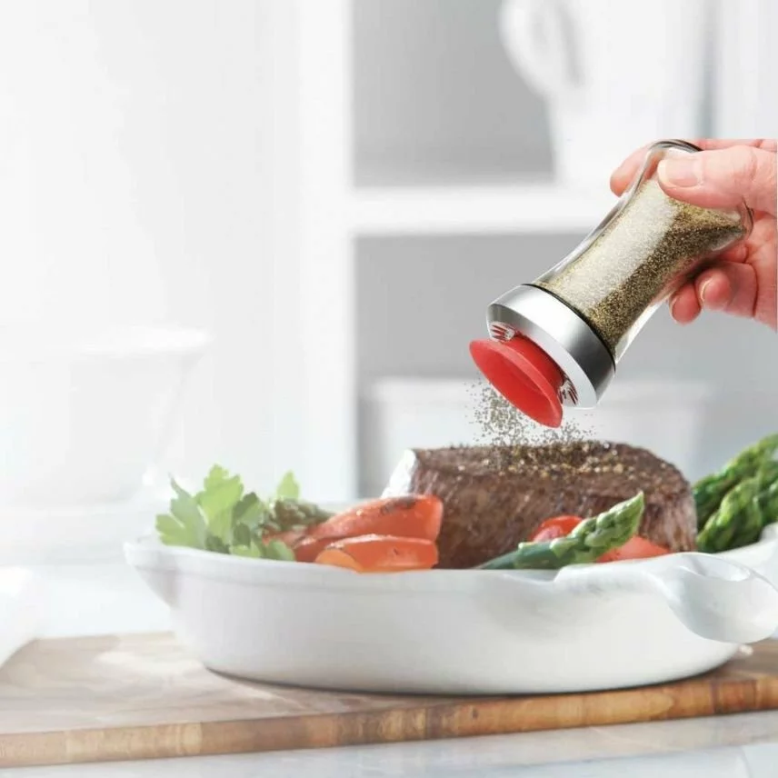 Brighten your kitchen with Trudeau’s brightly colored silicone Salt or Pepper shaker. This vibrant salt or pepper shaker comes in red, green or blue and is a great seasoning tool for any tabletop. Simply press the lid to pop it open and season your food, then close it up when you’ve finished for dry salt and spill-free shakers. Bring some color and flavor to the dinner table with Trudeau’s cute Pop Salt or Pepper Shakers in assorted colors.