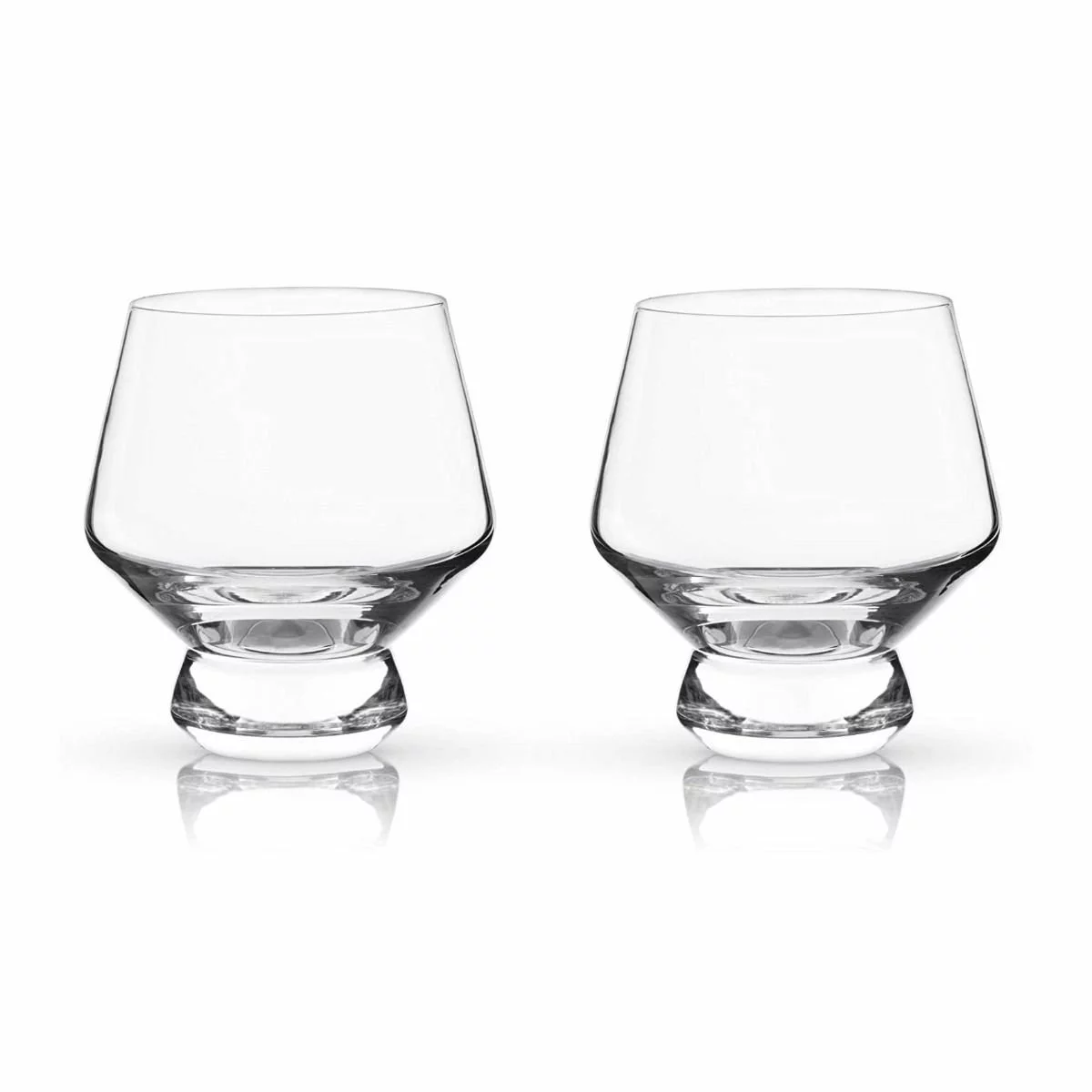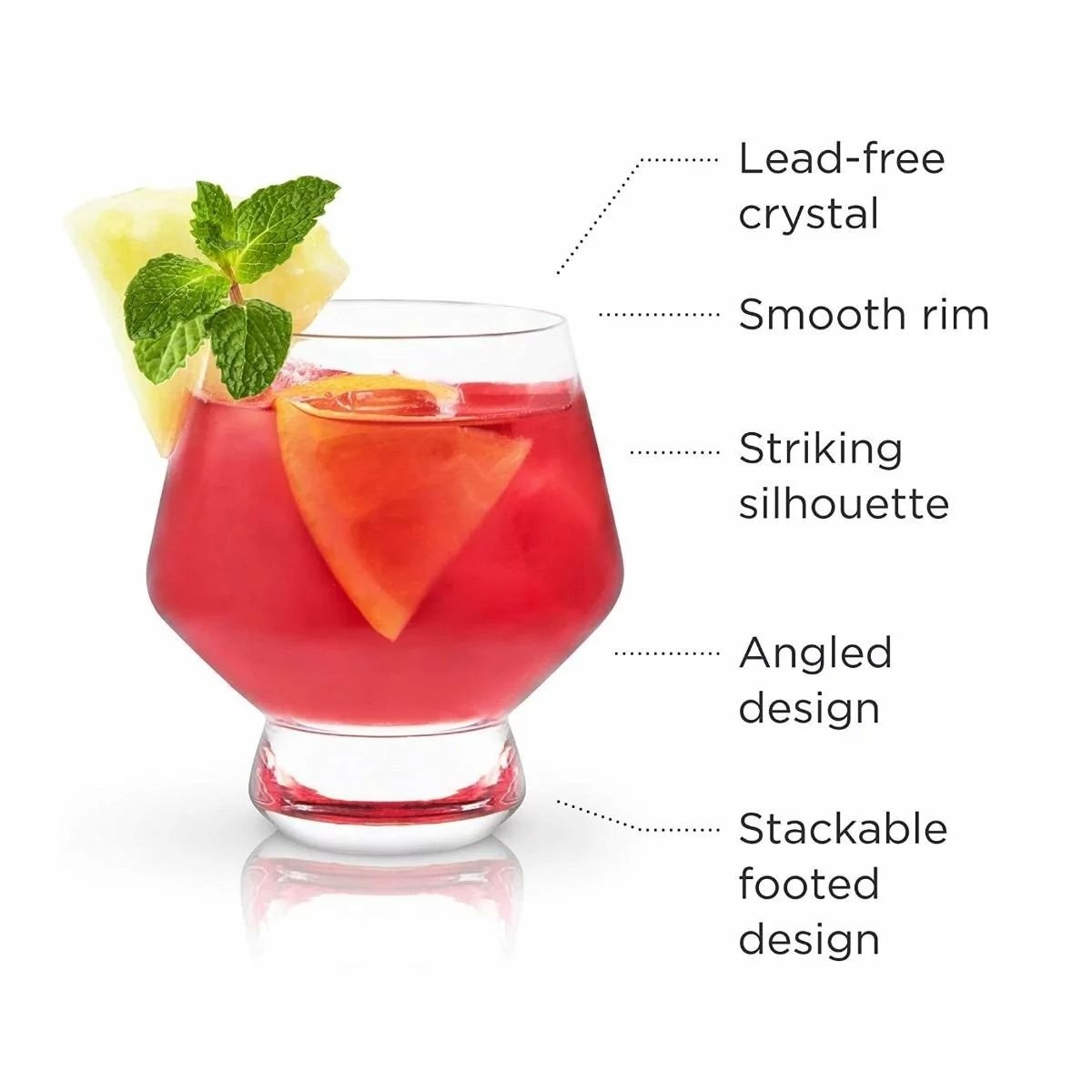 With sleek & stylish angles and elegant footed bases, the Viski® Footed Crystal Punch Cups will add a touch of elegance when serving Sangria, Rum Punch, and other favorite beverages! This beautiful set includes 2 glasses that are crafted from sparkling lead-free crystal that’s ultra-sheer for a striking display of the contents within. With a modern design and weighted footed bases, these glasses will make sipping your favorite mixed drinks & cocktails a luxurious experience. Plus, these glasses are stackable for compact storage and come in a stylish box that’s great for gifting! Create a stunning display that’s sure to impress guests with the Viski® Footed Crystal Punch Cups!